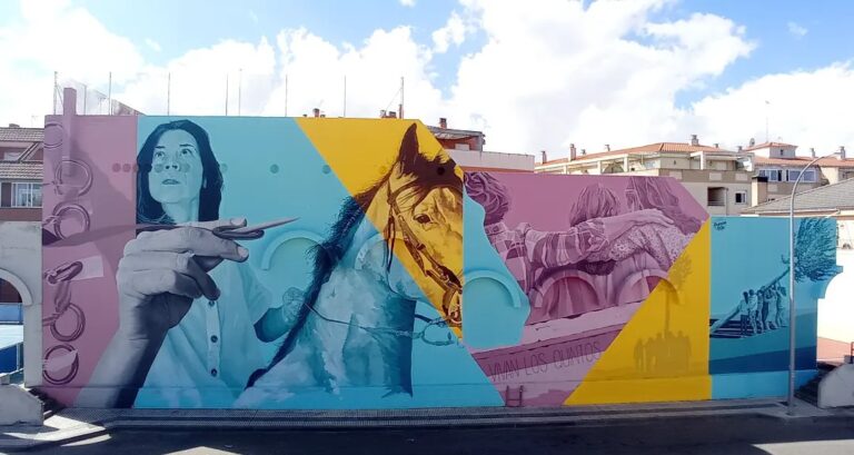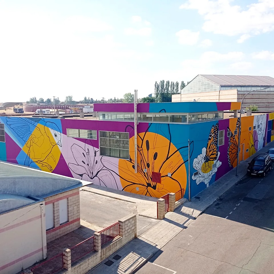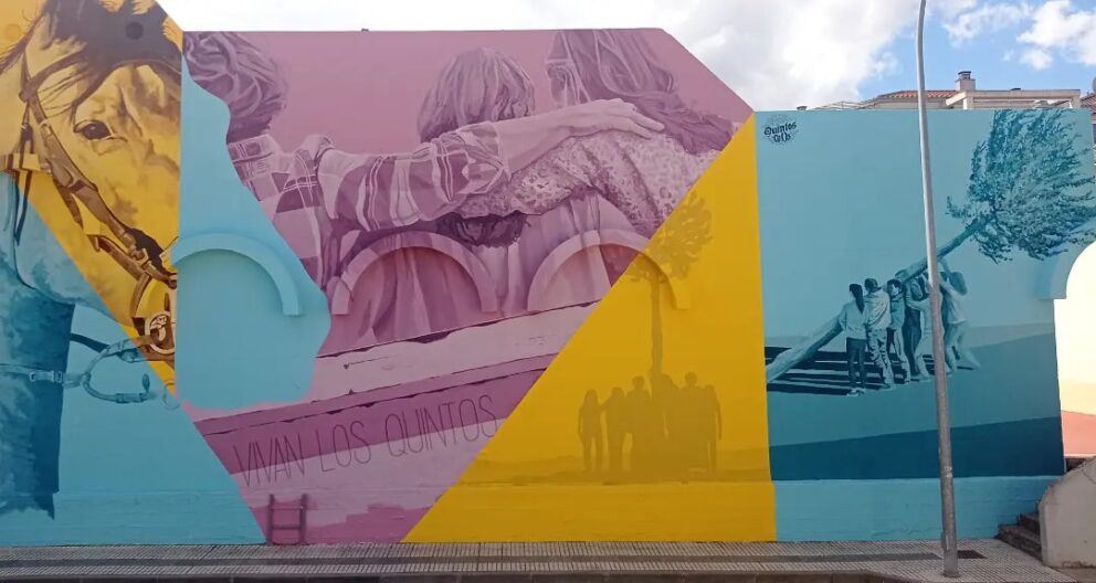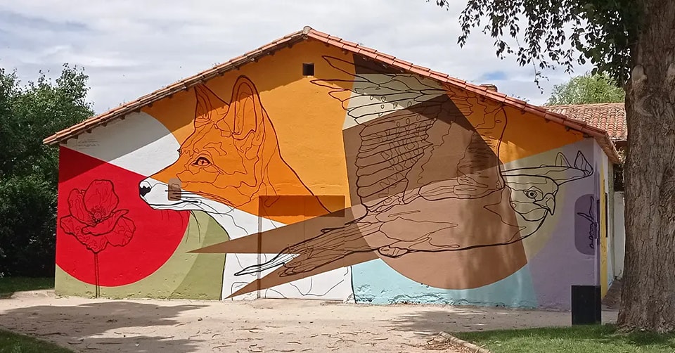 El Ayuntamiento de Villares Reina le encargó un mural como homenaje a la tradición de los Quintos y en la Escuela Infantil de Santa Marta de Tormes, revivió el edificio con su arte en una superficie de aproximadamente 900m².