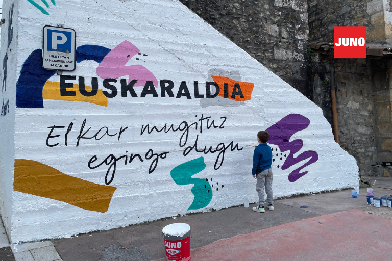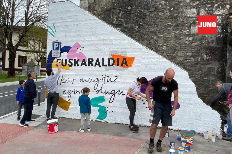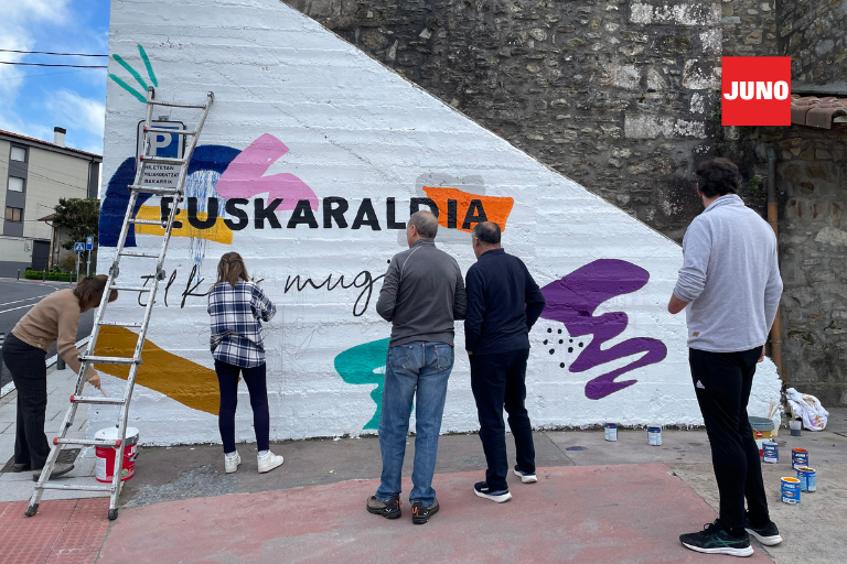 El mural no es solo un elemento decorativo, sino también un símbolo de la participación ciudadana y del impulso al uso del euskera en el día a día.