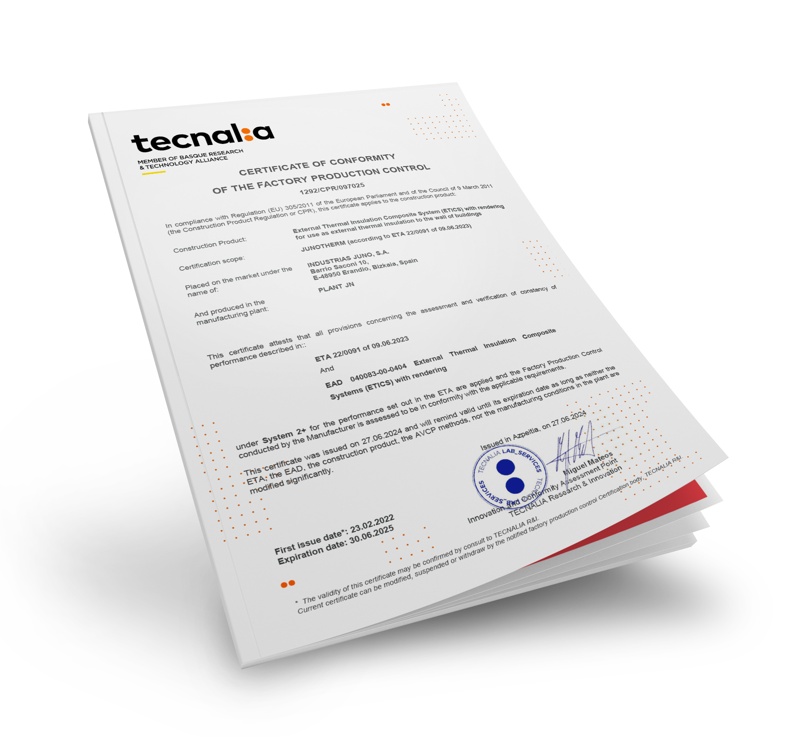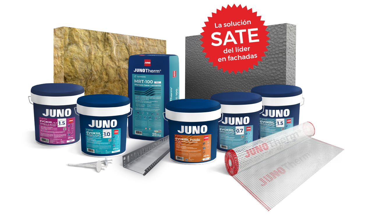 SATE JUNOTherm® ofrece soluciones técnicas de aislamiento térmico por el exterior tanto para obra nueva como para rehabilitación. Contamos con sistemas certificados y un equipo técnico que acompaña al proyectista desde el diagnóstico hasta la aplicación en obra, proporcionando asesoramiento individualizado en la elección del sistema más adecuado, cálculo de transmitancia, redacción de memorias técnicas y seguimiento de obra, cumpliendo con los requisitos del CTE y normativa europea.